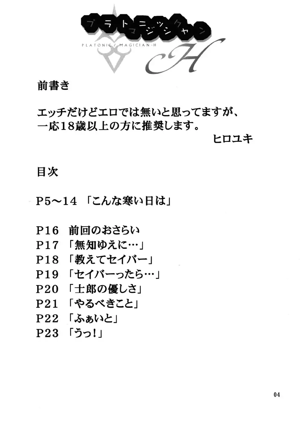 (C67) [Jishou Seijunha (Hiroyuki)] PLATONIC MAGICIAN H (Fate/stay night)