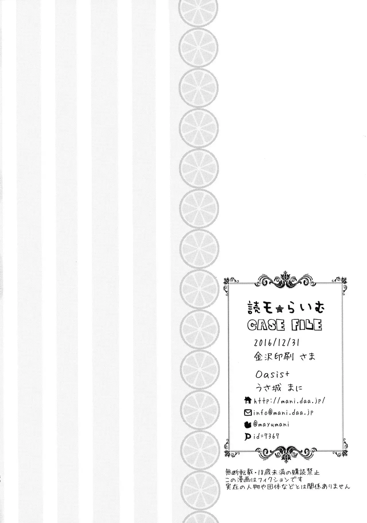 (C91) [Oasis+ (Usashiro Mani)] Dokumo Lime CASE FILE